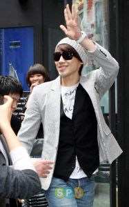 He has appeared at a fan signing to promote a certain cosmetics brand. Rain looks like he's been stressed. His complexion is pale, he hasn't shaved, and he has lost some weight! Here he is waving to his fans with a big smile.