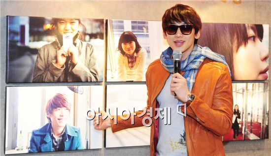 Singer and actor Rain speaks at his photo exhibition held at coffee shop Byul in Seoul, South Korea on March 14, 2010.