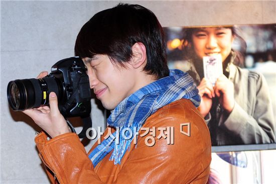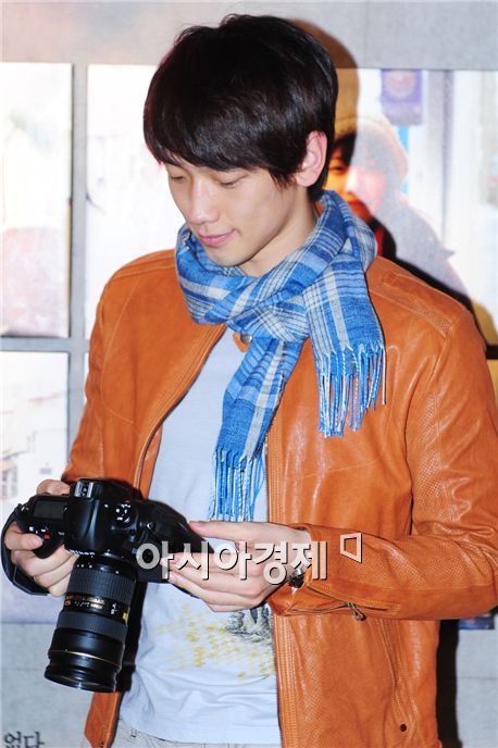 Singer and actor Rain takes a photograph at his photo exhibition held at coffee shop Byul in Seoul, South Korea on March 14, 2010.